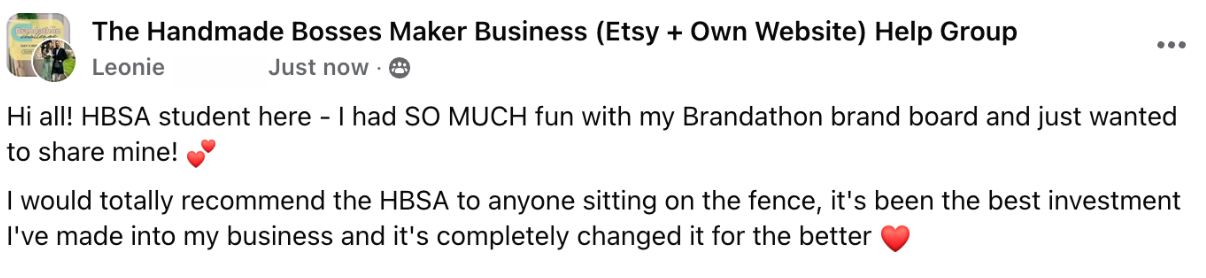 Karen thinks we're great, and we think she is đ The HBSA has been worth the investment for her and her handmade business