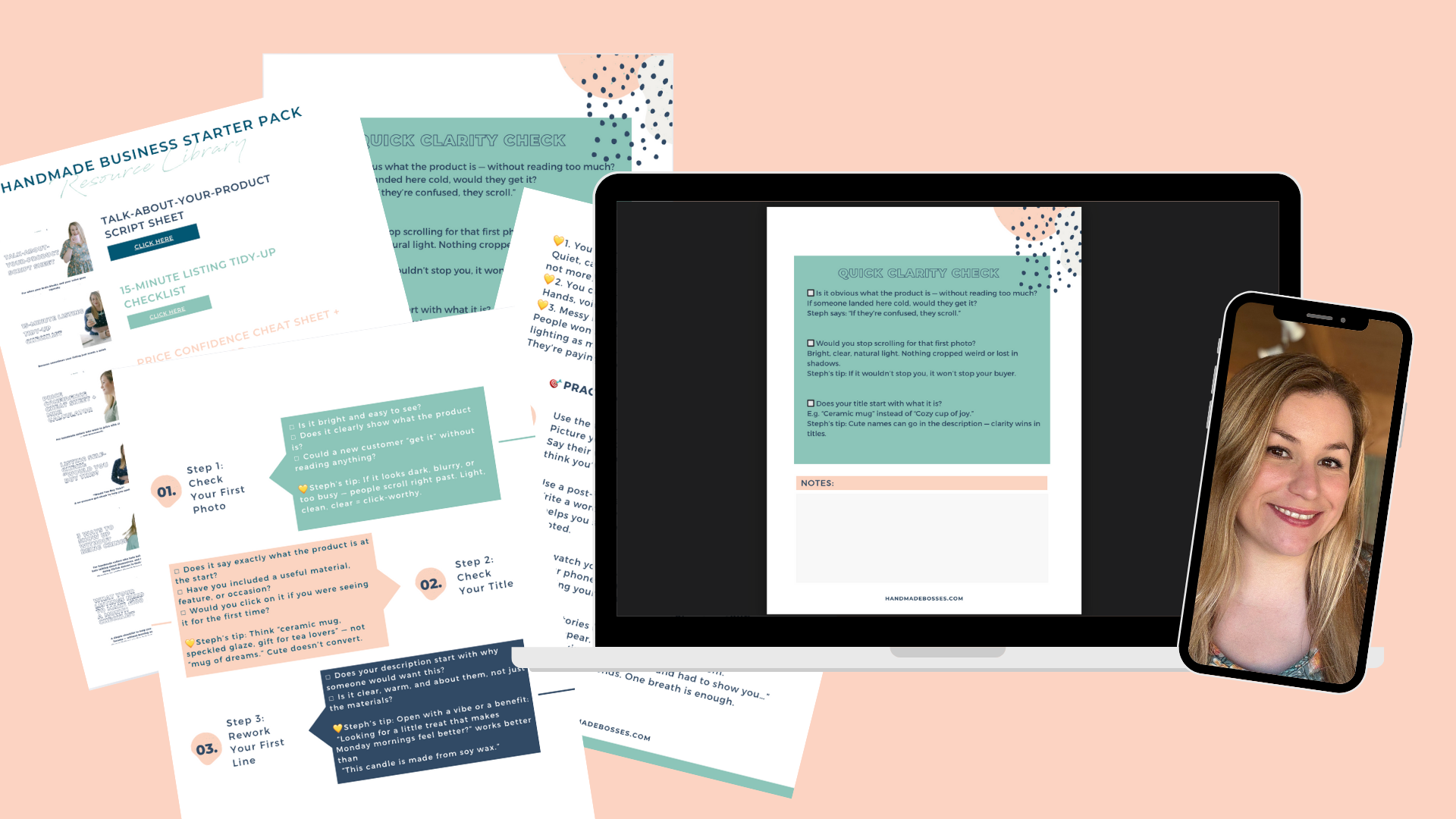 This pack is your gentle nudge forward — with tools that help you stop overthinking and start making real progress in your handmade business.