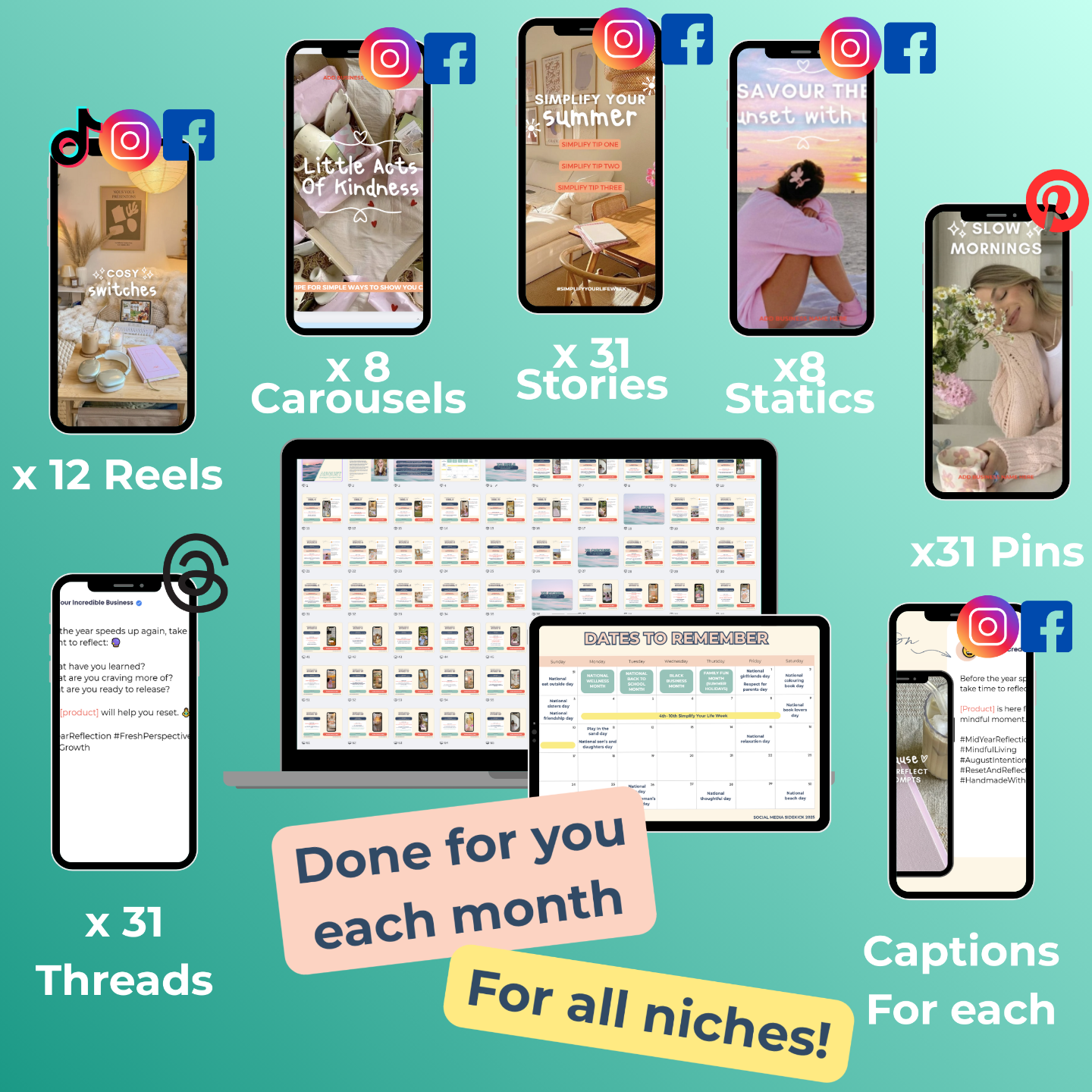 ✅ Complete Content Plan for Instagram, Facebook, TikTok, Pinterest & Threads