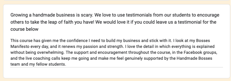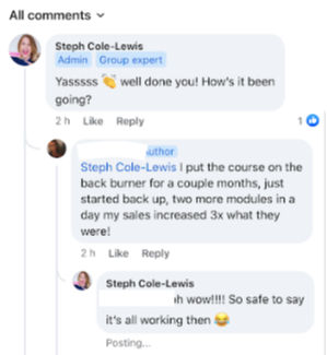 A 5* review and the course has helped Leonie beyond expectation with the ongoing support, live calls and community