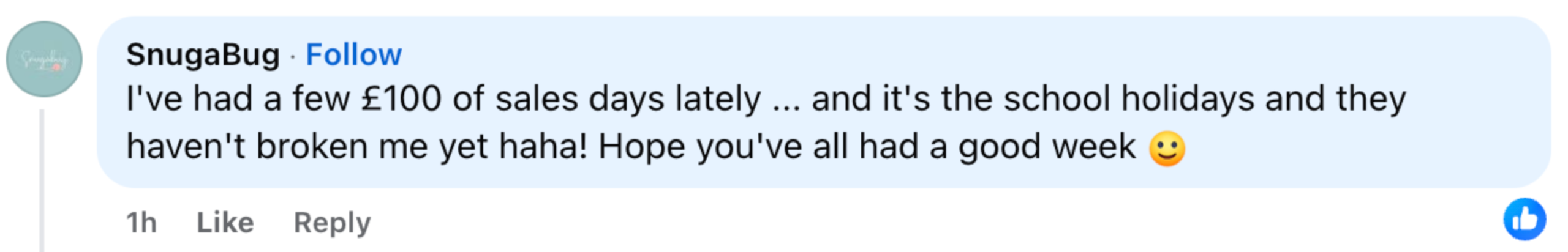 Since starting her business in March she's reached over ÂŁ1000 and smashing her goals !!