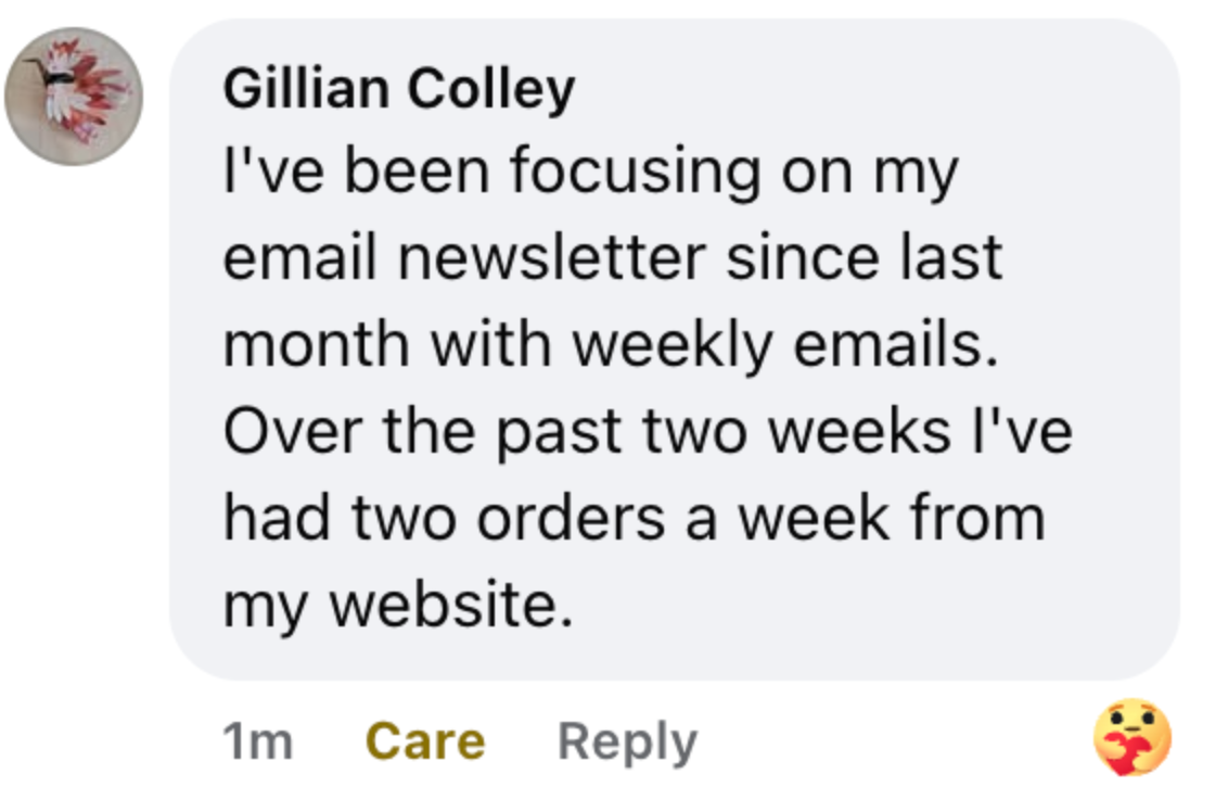 Two orders from her website after focusing on her email mailing list đ