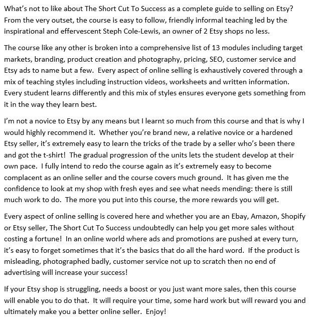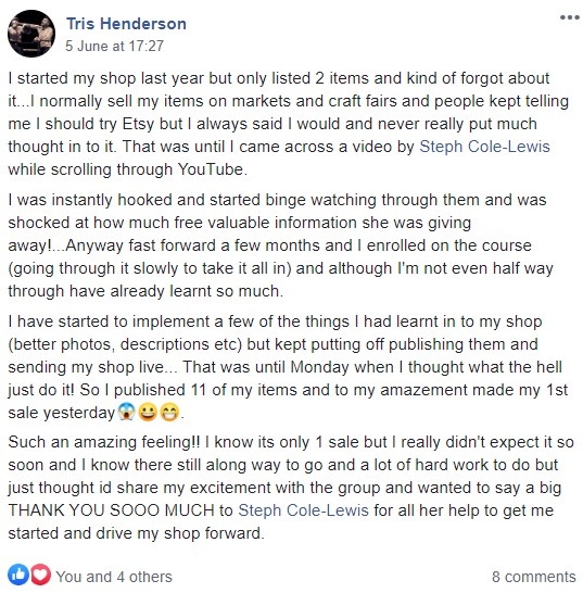 Woo hoo!! Just joined the course and first Etsy sale under her belt!!