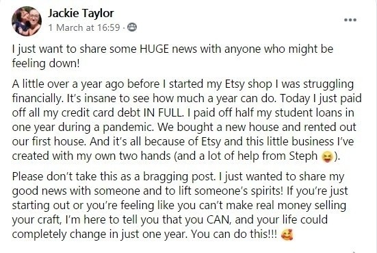 Stacey has hit over ÂŁ4,000 in Etsy sales for the month
